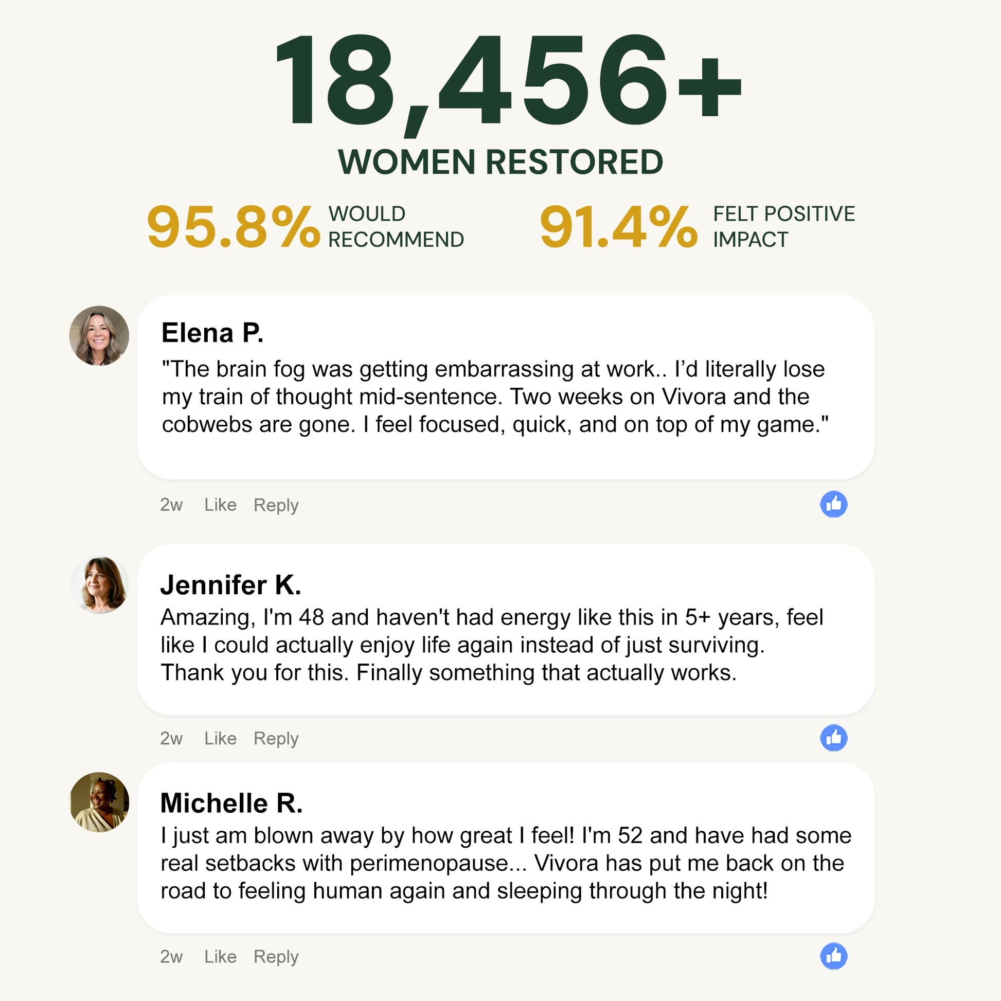 VIVORA THRIVE fills the gap that standard hormone replacement completely misses. And for women who are still exhausted even ON HRT, this is the missing piece.